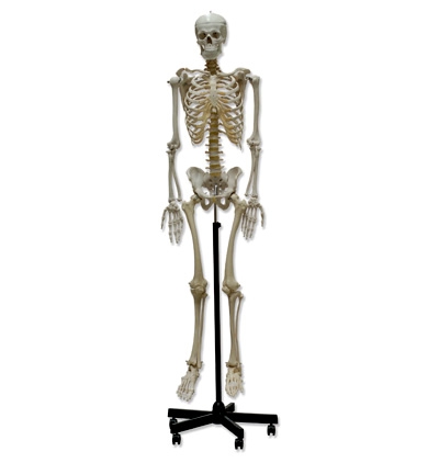 Esqueleto tamaño real, altura 173cm., aumentos 1x Fabricado en PVC con soporte de 5 patas con ruedas. Tamaño real. Huesos numerados. Mandíbula inferior móvil con 3 dientes extraíbles. Craneo en dos partes para mostrar estructura interna. Altura 173 cm. Referencia: 48000090 Marca: Nahita « Volver