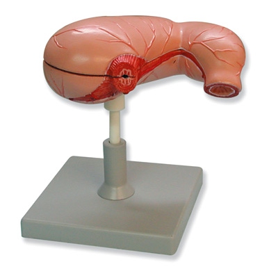 Modelo de Estómago, en 2 partes, aumentos 2x Mitad superior y sorporte desmontables. Representadas las capas de la pared estomacal, parte inferior del esófago cercano, parte cardiaca del estómago, parte superior del duodeno, vasos y nervios. Partes: 2. Aumentos: 2x. Referencia: 48000160 Marca: Nahita « Volver