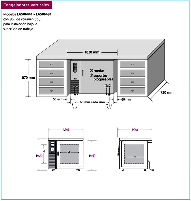 Congeladores verticales LA506481 (para incorporar al mobiliario de laboratorio, bajo la superficie de trabajo):
