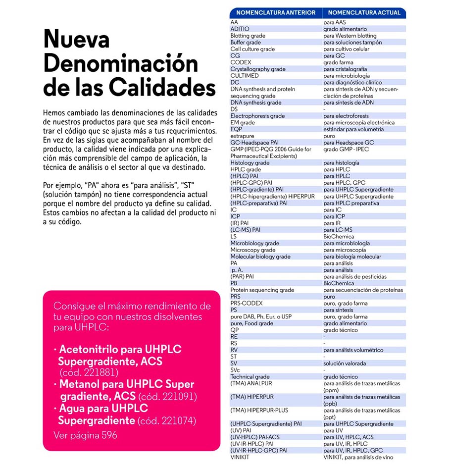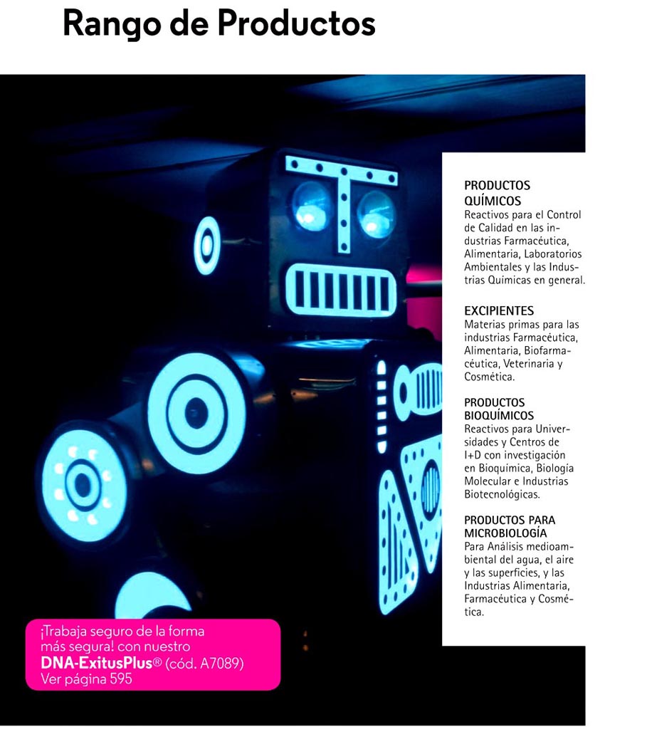 Para una búsqueda fácil, los productos aparecen por orden alfabético y se han incluido al final índices por número CAS o código de producto para una rápida búsqueda.