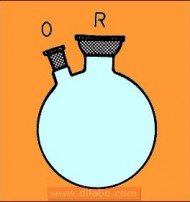 Matraz esférico con boca central rótula y lateral dirigida al fondo