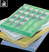 Bandejas muy ligeras en poliestireno. Apilables. Para 20 portaobjetos 26x76 mm. Dimensiones: 195x...
