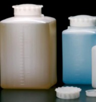 Botella rectangular polietileno, tapón estrella, 100ml. boca ancha, 600ud.